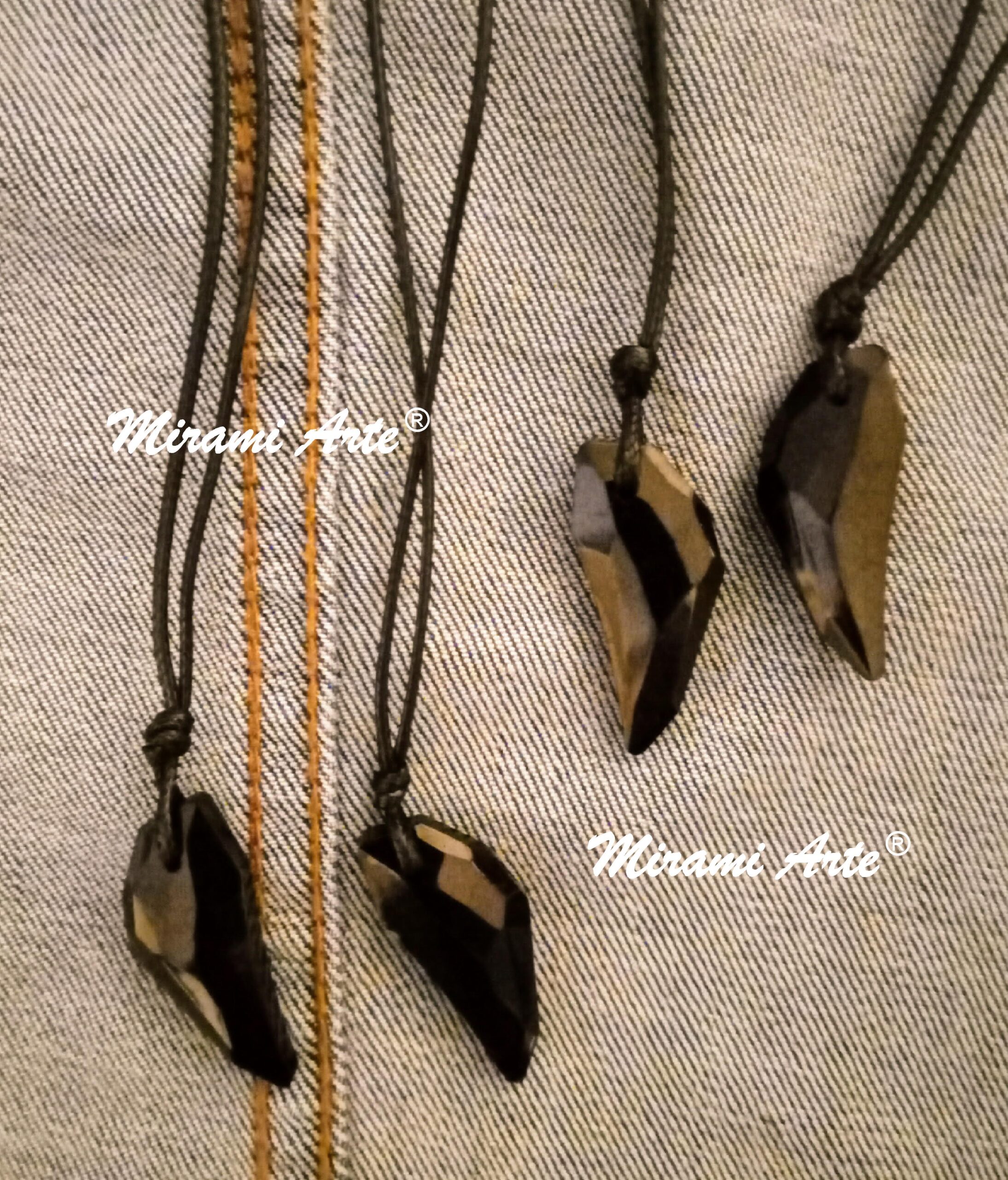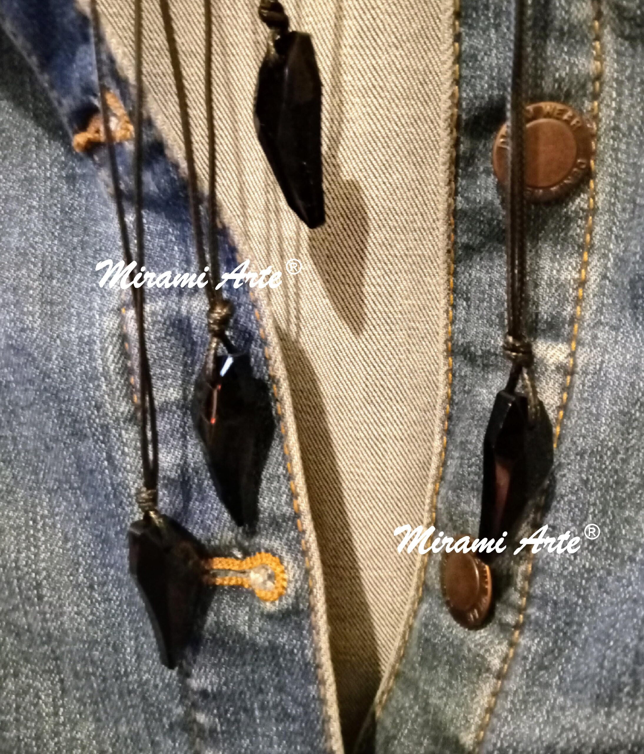Colgante unisex diente de lobo geométrico negro (1 x 3 cms) con cuerda ajustable hasta 70 cms