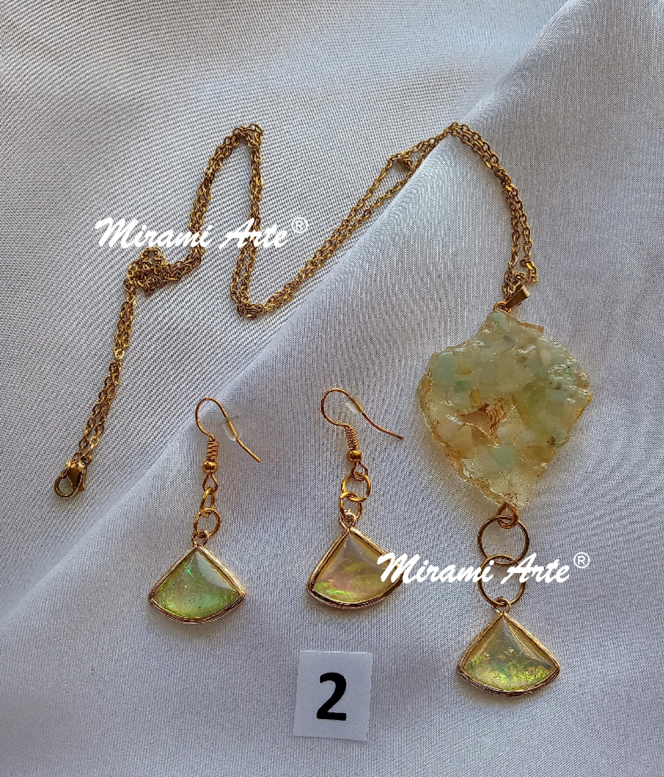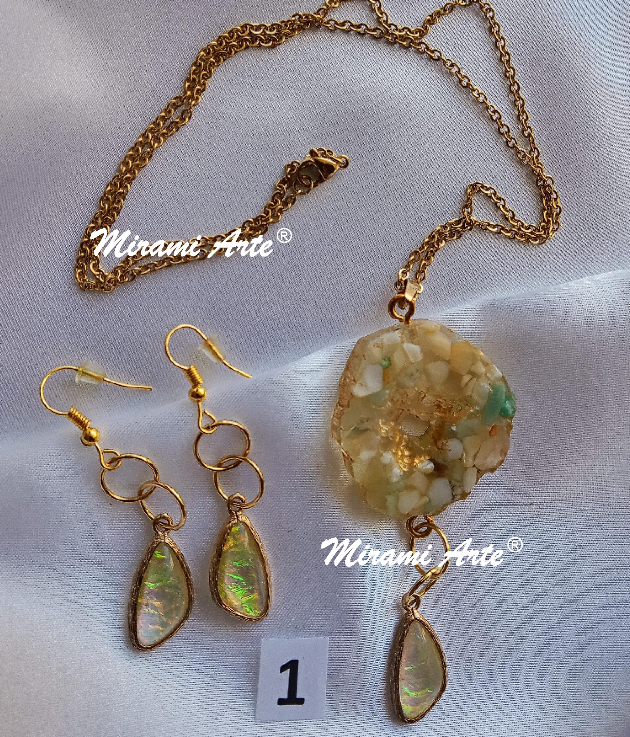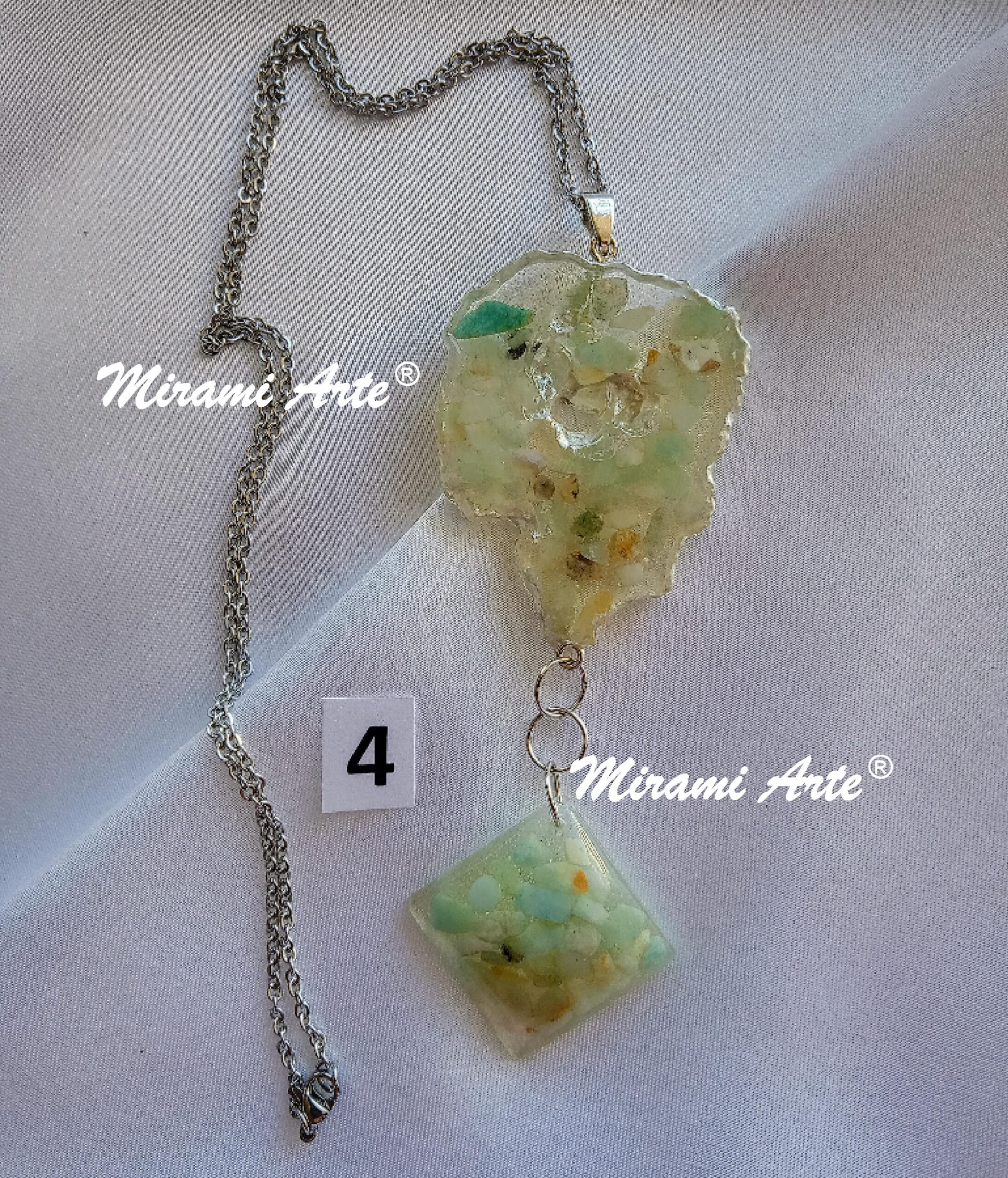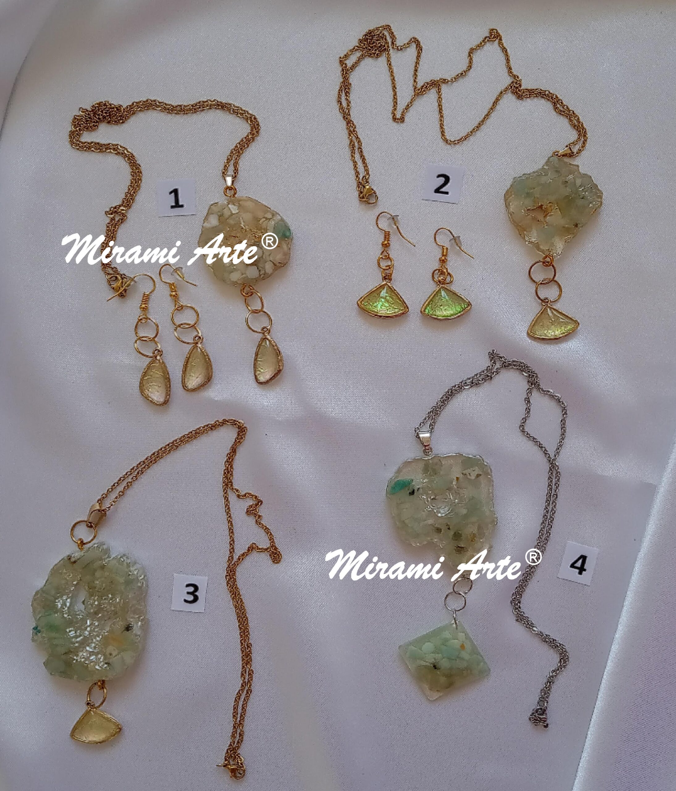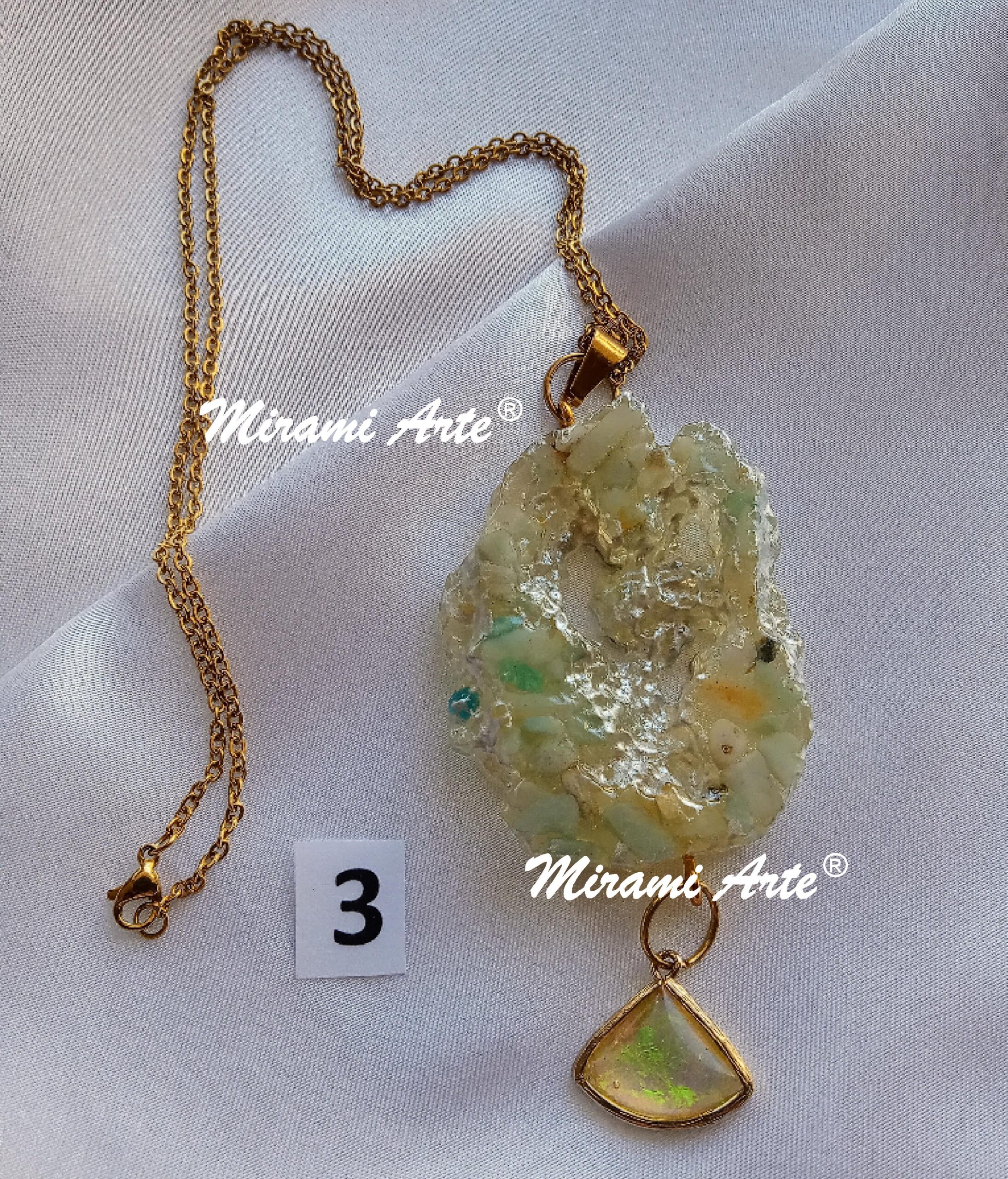 Diseños asimétricos en Resina con Piedras verdes marrón y blancas