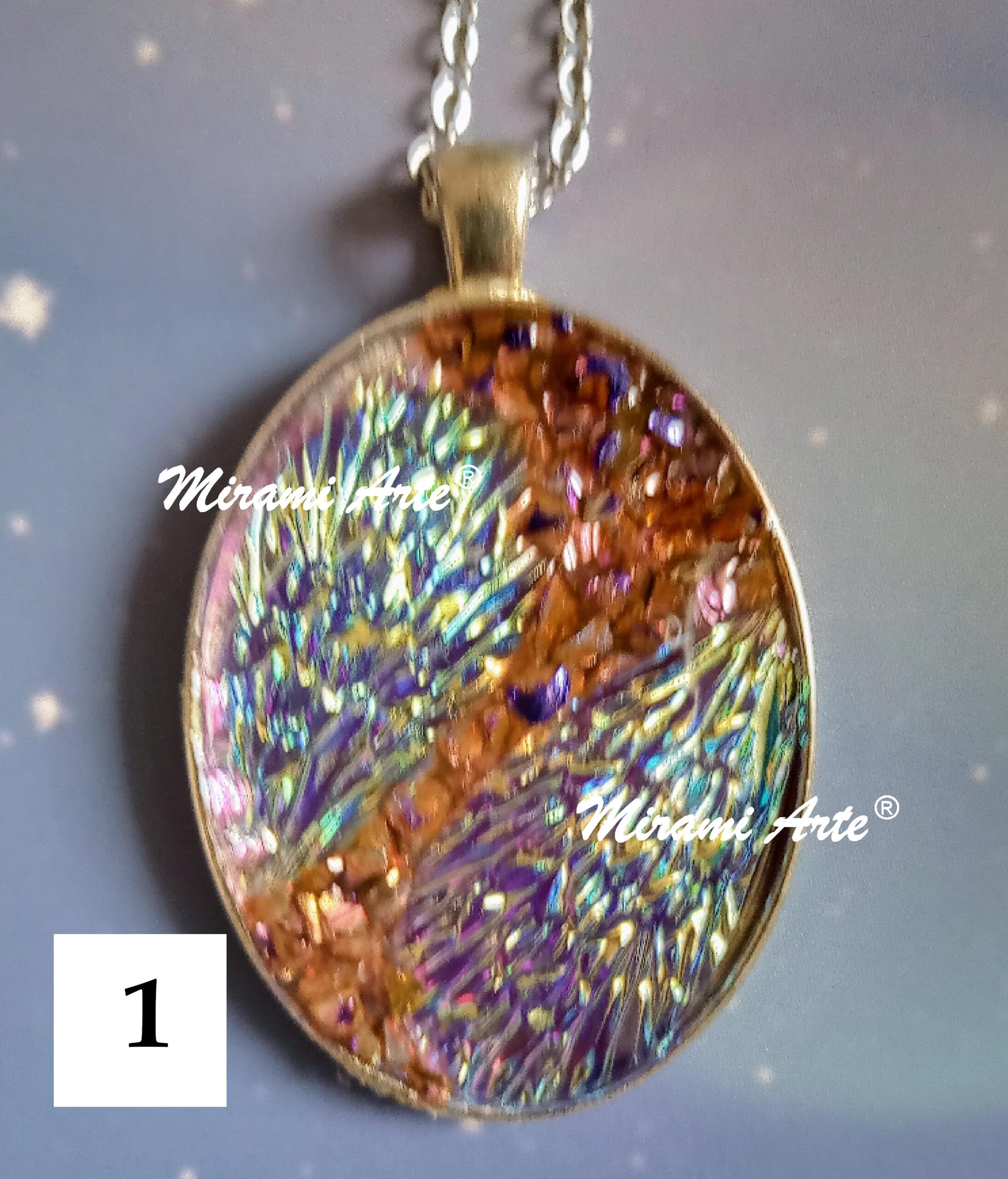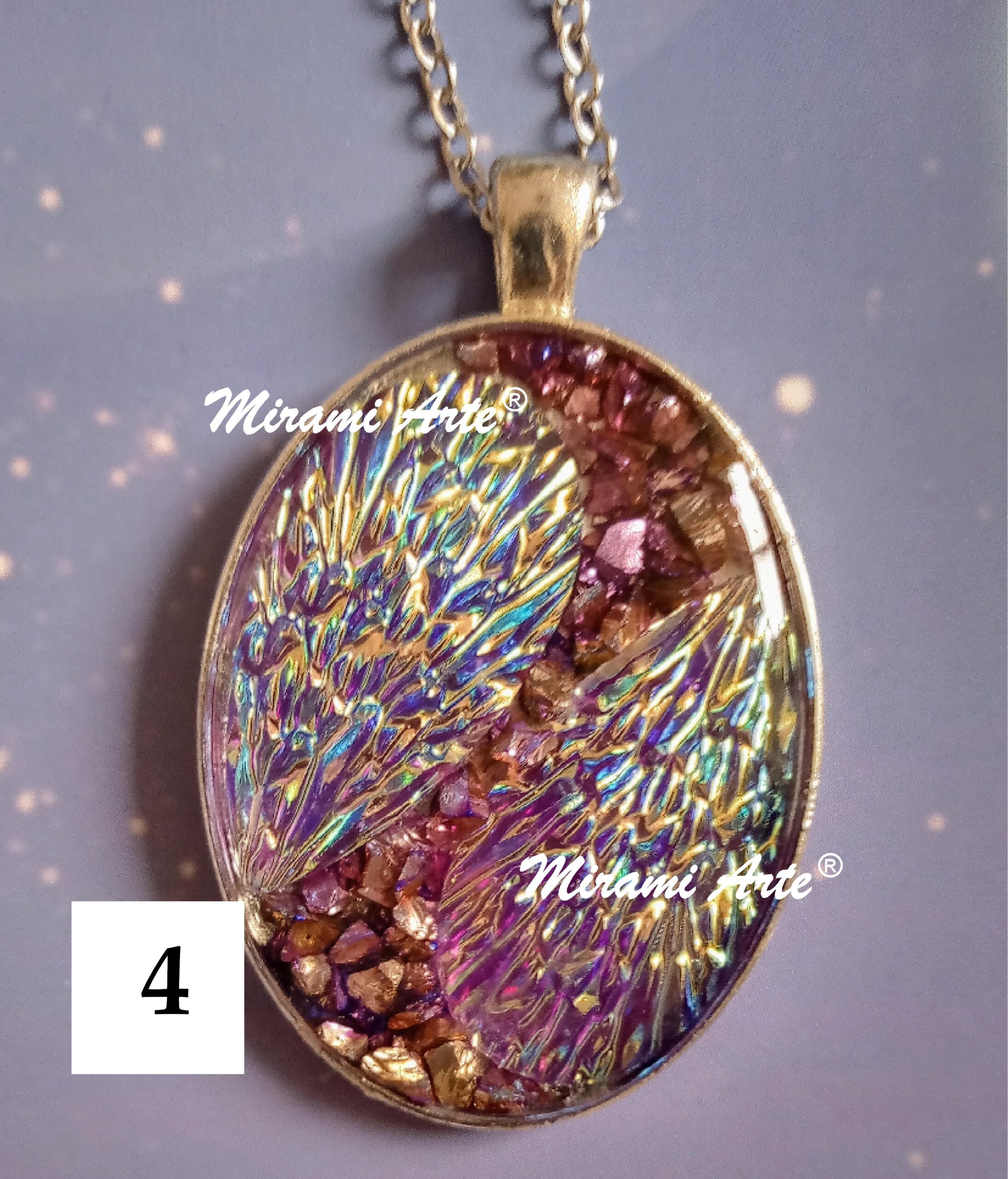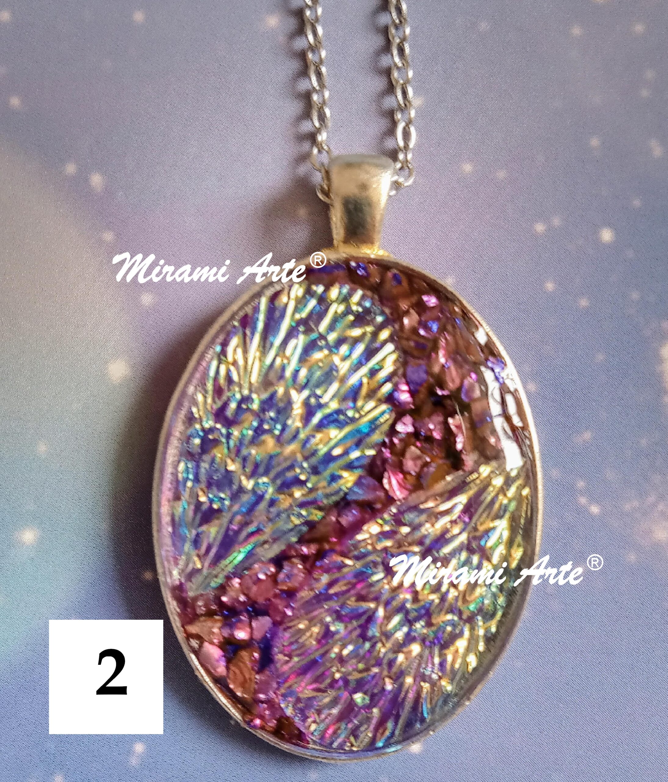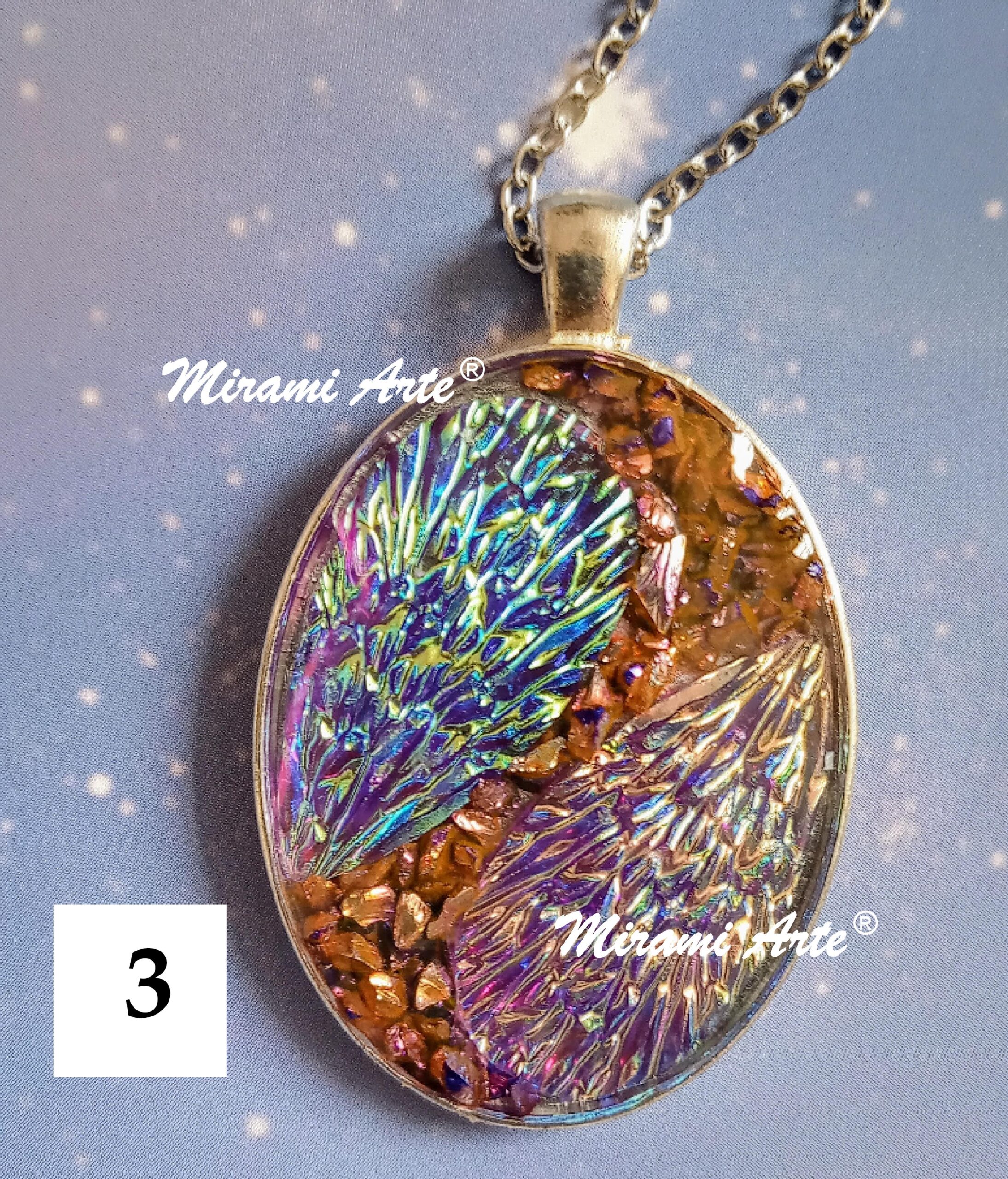 Lindos medallones ovalados metálicos, que llevan por dentro un poco de cielo …pequeñas alitas de ángel en tornasol color lila…